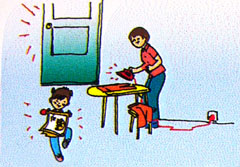 电熨斗不用时要竖放,离开时要切断电源