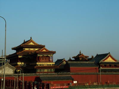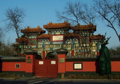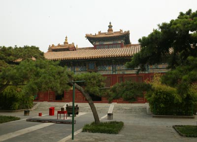 雍和宫位于内城的东北角,是北京最著名的喇(lǎ)嘛(ma)庙。清代康熙年间,此地建成雍亲王府。后来雍亲王胤(yìn)禛(zhēn)做了皇帝,年号“雍正”。那时皇帝被认为是真龙天子,皇宫是禁地,皇帝登基之前所住的地方称为“潜邸”,不能再让其他人居住。乾隆九年(1744年)这里改为喇嘛庙,成为清朝管理喇嘛教事务的中心。雍和宫的七进院落结合了藏传佛教与汉族传统建筑的特色。庙中的白檀木巨佛、紫檀木五百罗汉山、金丝楠木佛龛(kān),被称为木雕三绝。