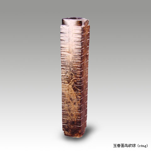 这是一件新石器时代的玉琮(cóng),距今3300——2200年,它内圆外方,呈方柱体,出土于良渚(zhǔ)文化的墓葬中。出土时和玉璧一起放置在墓主人身体周围,璧大部分被压在骨架下面,而琮则放在腹部或骨架旁边。周代礼书上讲“苍璧礼天,黄琮礼地”,从这里我们可以知道,玉琮是一种祭祀礼器,琮外圆内方,人们认为它能通天地,在医术并不发达的古代,人们用琮来礼地,祈求土地保佑人们身体安康幸福,祛(qū)病消灾。在人死后,人们又用琮做为葬玉,使人的魂气顺利升天,形魄顺利入地。这种用法流传于商周时期,汉代以后的墓中就很少见到玉琮了。(撰稿:裴亚静)
