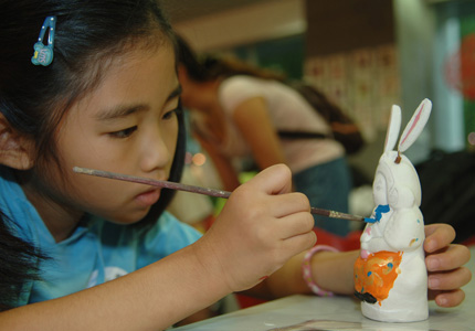 首都博物馆教育互动区七彩坊是一处可以充分发挥您的想象力和创造力的地方,这里为您提供丰富多彩的动手互动活动,活动对象主要是学龄前儿童以及小学各年级的亲子观众,成人观众也可参加。活动主要根据幼儿和儿童认知发展的需求而设计,提倡亲子共同参与、合作学习,通过“做中学”,启发儿童探索的欲望,培养儿童的动手能力,并培养其一定的艺术想象力。博物馆亦可以为儿童提供一个作品展示的平台,让儿童能够交流分享各自的成果,并分享成功的喜悦。