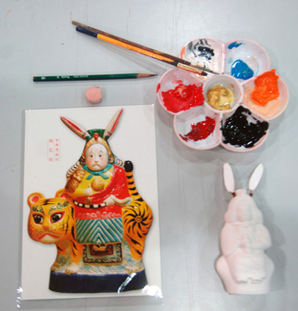 需要的材料:石膏模子、颜料、毛笔、铅笔等