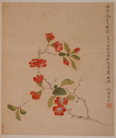 清朝建立后恽寿平始终怀念明朝,不愿做官,卖画为生。他看到友人王翚(翚读灰音)山水画的技法不如自己,怕压倒了王翚名声,就改画花卉了。这样志节高尚的人,作品自然散发出清高、优雅的气质。马元驭以恽寿平为师,因此他的没骨画也很有神韵,可称雅致脱俗。