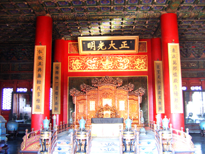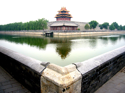 故宫位于北京旧城的中心,正名“紫禁城”,是明清两代的皇宫。故宫始建于明永乐四年(1406年),永乐十八年基本建成。虽经明清两朝多次重修扩建,仍基本保持原有布局。故宫占地共约72万平方米,拥有殿宇九千余间,建筑面积约15万平方米,宫墙总长约3400米,四角筑有结构复杂、形制别致的角楼,墙外环绕宽达52米的护城河。宫殿布局分为外朝和内廷两大部分,中轴线全部建筑的瓦顶采用黄琉璃筒瓦,金碧辉煌。外朝以太和殿、中和殿、保和殿为中心,文华、武英两殿为侧翼,是皇帝举行大典、召见群臣和行使权力的主要场所;内廷则是皇帝处理日常政务和帝后嫔妃、皇子公主们日常生活起居和奉神的地方,以乾清宫、交泰殿、坤宁宫一线和御花园、东西六宫为主体。故宫共辟四门,正门即午门,北门为神武门,东有东华门、西有西华门,午门内人工挖掘出东西贯穿的金水河,上跨五座汉白玉单拱金水桥。