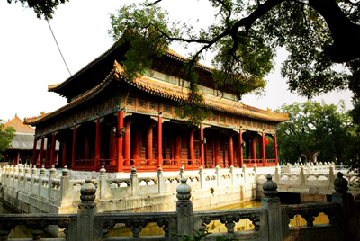 坐落在北京东城区安定门内国子监街(原名成贤街)15号的国子监与孔庙和雍和宫相邻,是元、明、清三代的国家最高学府。国子监始建于元大德十年(1306年),现存建筑大多为清代所建,主要有集贤门、太学门、辟雍、彝伦堂、敬一亭、东西六堂和博士厅等建筑。