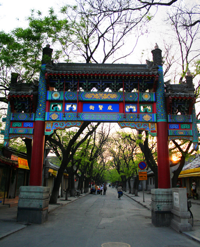 国子监街两侧槐荫夹道,大街东西两端和国子监大门两侧里有彩绘牌楼,是北京仅存的建有四座牌坊的古建街。