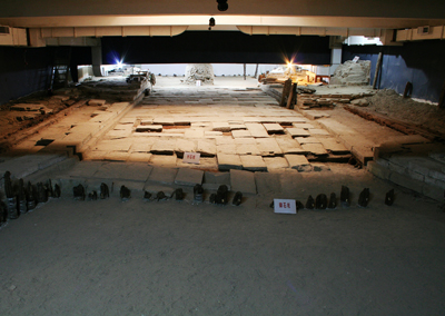 金中都水关遗址是北京地区迄今所发现的唯一一处完整的金中都建筑遗址,建造年代约在公1151—1153年间。遗址位于北京市丰台区右安门外玉林小区,今凉水河以北50米处。遗址跨城墙而建,全长43.4米,木石结构,水流经水涵洞由北向南穿城而出,流入护城河。现存的遗址主要有水涵洞地面铺石、两侧的残余石壁及部分城墙夯土等。金中都水关遗址是迄今国内所发现规模最大、保存也较为完整的一处水关遗址,为金中都和中国古代城市的研究提供了难得的实物资料。 1996年金中都水关遗址被定为“全国重点文物保护单位”。