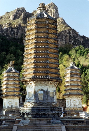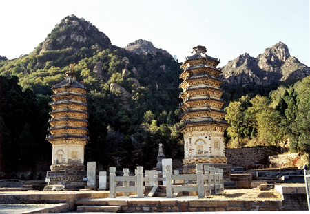 银山塔林位于北京市昌平区阴山南麓古延寿寺遗址上,是此寺院高僧的墓塔。寺内共有砖塔七座,其中金代五座,元代两座。金塔均为八角密檐式,高20米,须弥座及第一层塔身均为精美雕饰,塔檐向上逐层微减,外廓秀丽挺拔,细部砖雕手法精细。两座元代塔也是砖结构,但体积较小。其中一座密檐式,檐下刻斗拱,塔的立面富有曲线美。另一座是密檐楼阁式和覆钵式相结合,很特殊。这一古塔林是今天研究当时佛教艺术和砖石建筑技术的珍贵实物资料。 1988年银山塔林被定为“全国重点文物保护单位”。