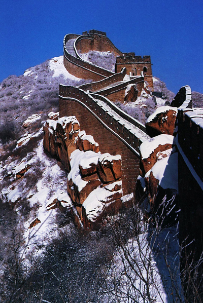 万里长城的八达岭段位于北京市延庆县境内,是长城的一个重要隘口,为居庸关的北口。八达岭于明弘治十八年(1505年)建成,嘉靖、万历年间屡加修葺,1949年后又经多次修缮,是现存明长城中保存最好的一段。关城东西二门,东门额题“居庸外镇”,刻于嘉靖十八年(1539年);西门额题“北门锁钥”,刻于万历十年(1582年)。两门均为砖石结构,券洞上为平台,台上周砖砌垛口,台之南北各开有豁口。关城和城墙均用整齐的石条和城砖砌成,极为坚固!