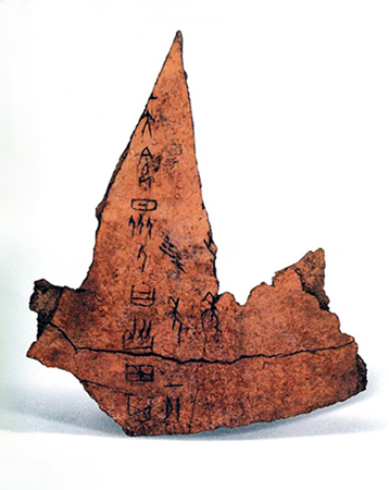 故事要从100多年前,发生在河南安阳小屯村的事情讲起。一天,那里的农民在翻地的时候,发现地里有不少破碎的乌龟壳,就赶忙挖了出来。你猜猜看,他们拿这破乌龟壳做什么用呢?我估计你是猜不到的。原来农民们是用它治疗外伤,把乌龟壳捣成粉末,放在被刀、剪割破的伤口上,就可以止血,人们把这叫“刀尖药”。后来,这种乌龟壳又不断被发现、被挖出,有时,一下子就以挖出1000多块。不仅有乌龟壳,还有牛骨头片。小屯村的农民还是非常细心的,他们在捣碎这些骨片时,发现有的骨片上刻了一些道道,这些道道是什么呢?有人说“会不会是文字呀”?一句话提醒了人们,有人赶忙找来过去从地下挖出的一件带字的铜器,把铜器上的字和骨片上刻的东西一比,还真有点一样的地方,于是人们知道了这乌龟壳上的道道是古代人刻的字,可谁也看不懂是什么字。很快,这种有字的乌龟壳被卖到了天津,卖到了北京,立即引起了一些收藏家和学者的注意,这到底是什么时候的文字?怎么读?都是些什么内容?大家研究来、研究去,终于,破解了这个历史之谜。原来,这是3000多年前商朝时期的文字,都刻在乌龟的甲壳和牛骨头上片上,所以,人们就给它起了名字叫“甲骨文”。