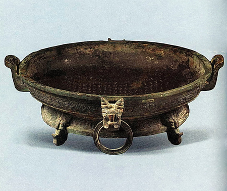 这个故事给您的孩子留了一个铜盘用途的问题。原来,在商周时期宴请客人的时候,在饭前饭后都要行沃盥之礼。通俗地说,就是洗手,是一种很讲究的洗手。由一个人用匜(盛水的器皿)将水慢慢浇在洗手人的手上,另有一个人用盘接洗手人的弃水。今天讲的逨盘就是行沃盥之礼用的。战国以后,这种礼仪渐渐废止。今天我国有些少数民族地区,还有类似的做法。