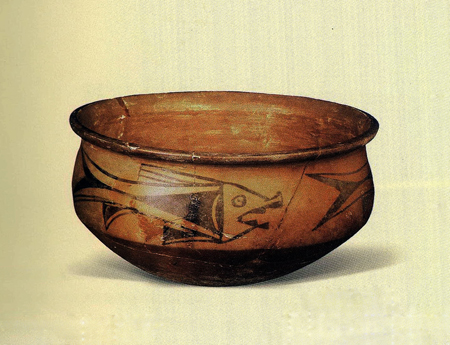 由于半坡人经常看到鱼,特别是鱼在水里游动时,姿态非常美。半坡人也很爱美,就照着鱼的样子画起来了,这么一条那么一条,愈画愈好,最后只要画个三角,再点上一个点,就成了鱼头。我们请你在看了半坡人画的鱼以后,也拿起画笔画三条不一样的鱼,然的寄给我们,你将得到一份精美的小礼物。