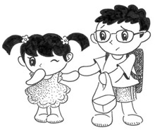 小虎看看左手拉着“跟屁虫”妞妞,右手拎着饭盒,背上背着大书包是不太方便参观。