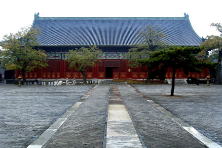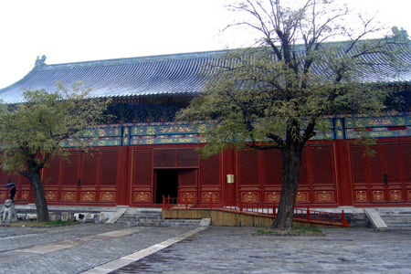 在先农神坛的东北是太岁坛,又叫太岁殿,是祭祀太岁神的场所。太岁神是值年之神。明嘉靖八年(1529年)嘉靖皇帝曾经在露天祭祀,三年之后才建造了太岁殿。太岁殿是先农坛内最雄伟的单体建筑,它坐北朝南,屋顶上覆盖着黑琉璃筒瓦,边缘用绿琉璃瓦镶边。建筑外部为色彩浓艳的彩画,显得金碧辉煌;内部的彩画,色彩古朴,肃穆典雅;一浓一淡,一动一静,互相呼应,相得益彰。大殿对面为拜殿,与东西配殿组成了宽敞的院落。每逢祭祀太岁,逢水、旱或出征、凯旋等重大事件时,皇帝都要派官员来这儿行祭礼。