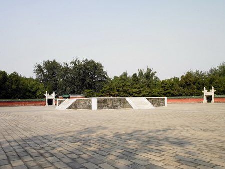 以朝日坛为中心,周围还建有神库、神厨、钟楼、燎炉、瘗坎和宰牲亭等为祭日服务的附属性建筑。
