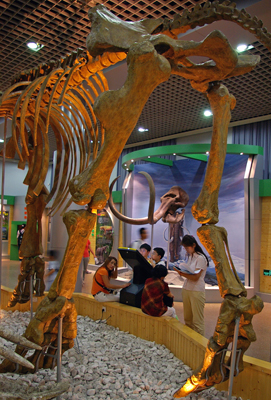 2006年7月12日,几名观众正在自然博物馆参观《古哺乳动物》。