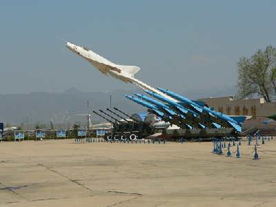 拍摄于航空博物馆。成45度排列的模拟战机、导弹展示了中国人民解放军空军的军威