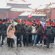风雪之中游故宫和快乐的旅游者