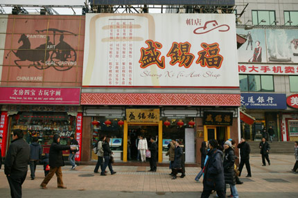 1917年创建的帽厂。“盛”是“兴隆茂盛”之意,“锡”和“福”取自创始人刘锡三的名字(刘乳名来福)。1937年盛锡福在北京王府井开设分号。盛锡福制帽选材考究,工艺上乘,时有“国货之光”、“挽回利权”的赞誉。1949年后王府井盛锡福承担了为国家领导人和外宾服务的任务,曾经为毛泽东、周恩来、刘少奇及朝鲜金日成主席、印尼苏加诺总统定制帽子。(编写:朱锴)