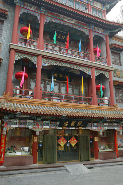 1853年(清咸丰三年)创建,以生产经营传统的千层底布鞋而闻名。“内”指大内,即宫廷;示意顾客穿上此店制作的朝靴,可以在朝廷官运亨通,连升三级。内联陞制鞋工艺讲究,千层底布鞋鞋底的制作须经过7道工序,纳底要求每平方寸用麻绳纳81针以上。旧京民间有“头顶马聚源,脚踩内联升,身穿八大祥,腰缠四大恒”的说法。(编写:朱锴)