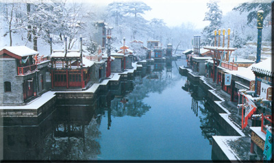 后湖畔的“苏州街”模仿浙东“一水两街”的建筑布局,再现了苏州水镇河街的买卖街,有60多个铺面。