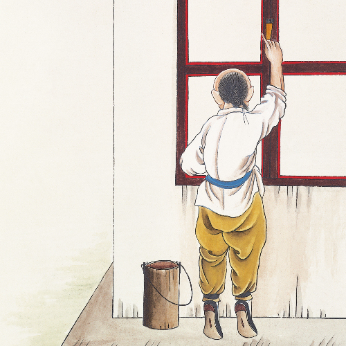 清代设立“油漆作”,专供皇宫大内建筑油漆彩绘之用。担当宫室油漆彩绘、裱糊的工匠,必须是有家属的北京人,以防止偷盗。此类匠人是不下街吆喝的,而其住家门口往往张贴“油漆某寓”以示有别于他类匠作。至今地安门西侧有胡同名为“油漆作”。