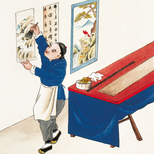 明清时期多次从江苏苏州一带调裱画好手到北京,所以老北京裱画行招牌上有“苏裱”二字。
