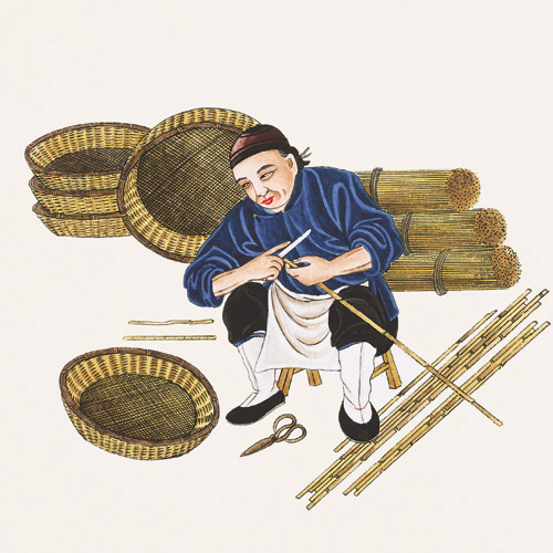 用筛子来分离杂物,方便、省事,如粮食中的瘪籽、沙子中的石子等。筛子一般用竹条、竹篾编成。做筛子讲究形圆、硬朗,筛子眼均匀、大小一致。昔日永定门外有个擅长做筛子的刘五,人称“筛子刘五”,他还是白纸坊太狮的第一代传人。