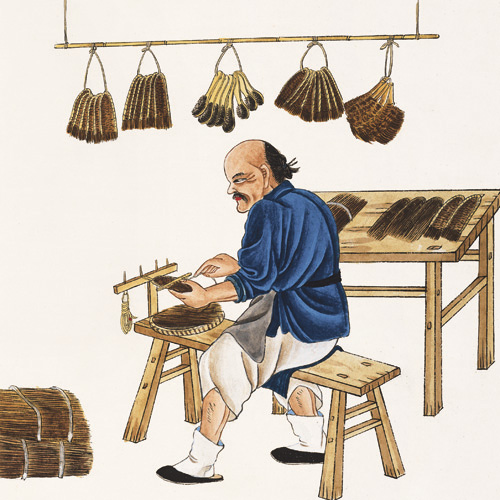 棕刷可作裱糊匠使用的护刷,用棕树的木棕勒制而成,旧时棕刷铺多在天桥以北一带。