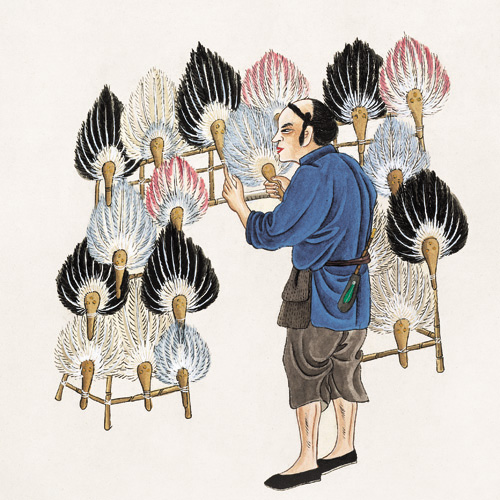 这种羽扇主要是由东三省、蒙古等处运来的雕翎做成的。清朝曾风行过一百年左右,到了光绪中叶就不流行了。