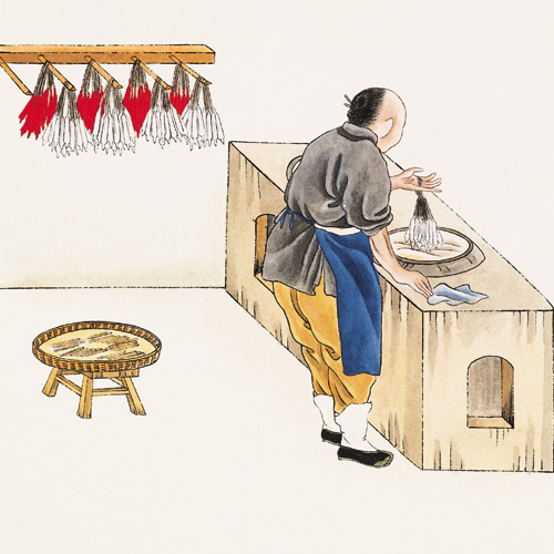 蜡烛是用动物油脂、植物油混合,熬到一定程度,慢慢地冷却成为乳状的蜡油。制烛的工匠用灯草捻制好烛芯,放入熬锅内,使之沾上烛油,稍事冷却,烛油即凝成柱。再沾,再凝,如此反复,到了一定的粗细,就成了蜡烛。在制做中还需加颜料,成红色,因白蜡为丧事所用,为老北京人所忌讳。二十世纪三十年代,北京老式家庭仍忌用洋蜡。
