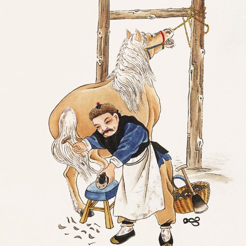 在老北京,交通运输主要用畜力,运货的大车(马车)、载客的轿车都靠马或骡、驴来拉。马、骡、驴的蹄钉了铁掌才耐磨。这便需要有许多钉马掌的铺子。钉掌时,钉马掌匠需将牲口紧挨着桩拴紧、甚至将牲口肢体设法拴住,使其不能动弹、伤人,然后方能钉铁掌。这种铺子多在南城,也有不少在城门外的。