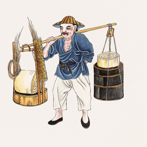老北京的主食以蒸为主,而芦席编成的笼屉盖用久了容易被水汽侵蚀漏气,需要重新更换。修理笼屉的手艺人吆喝着“修理笼屉哟!”,走街串巷,肩上挑着竹担,担子里装着木板、芦席、藤条、钻头、铁锤、小锥子和小刀等修理材料及修理工具。