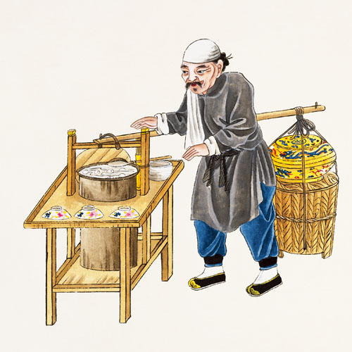 元宵,是北方人的说法,在南方普遍称为“汤圆”,是用江米面加上各种芯子抟制或摇制的小吃。每到旧历年和上元节(即正月十五,又称元宵节)前后,北京街头多有回民卖元宵的。