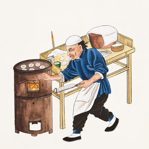 烧饼大多用麦面做主料烙制而成。烧饼种类繁多,有芝麻酱烧饼、吊炉烧饼、缸炉烧饼、酥烧饼等。吊炉烧饼多为回民铺所制,吊炉形如覆锅,以铁板为底,用铁链吊起,以木棍移动,常以柴火做燃料,而芝麻酱烧饼则用煤。老北京的酥烧饼以宣南一带最有名,《故都食物百咏》也有诗写道:“干酥烧饼味咸甘,形有圆方贮满篮,薄脆生香堪细嚼,清新食品说宣南。”