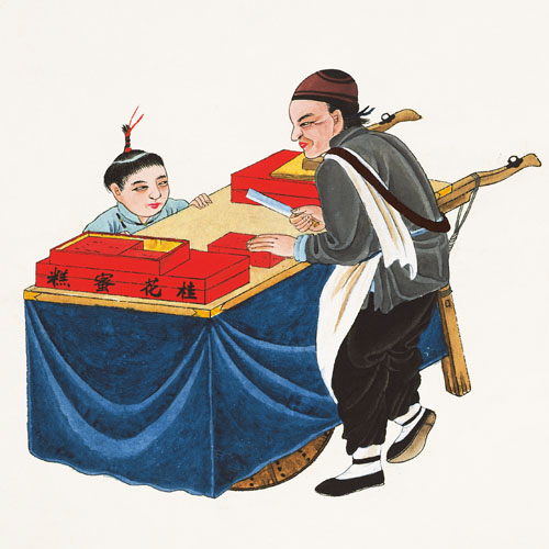 据说慈禧喜吃山楂糕,但觉其名有些不雅,故赐名金糕。而老北京金糕店以鲜鱼口的泰兴号和大兴的富川斋最为有名。金糕主要原料是山里红,同时掺入少许桂花,故有桂花清香,一般在秋后食用。下街卖金糕的吆喝着:“山楂糕一个大一块!”,并用一把很长很细的刀子将金糕切成小条,来人买时便用可食用的江米纸将其包好售出。