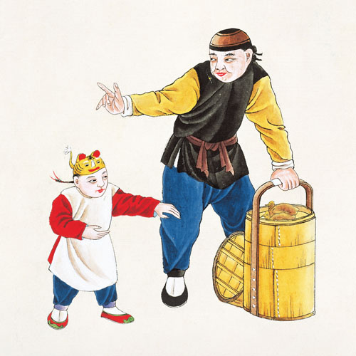 旧时京城午后便有“肥卤鸡”的叫卖声。卤鸡即以整鸡入盐水,加花椒、桂皮、八角、茴香子、丁香花蕾及少许酱油煮制而成。小贩臂挎圆笼,走街串巷,经常往来茶馆、酒肆、浴池、妓院、大烟馆等处。圆笼为多层食盒,每层可放卤鸡三四只,笼盖顶部镶有玻璃,展示货色。