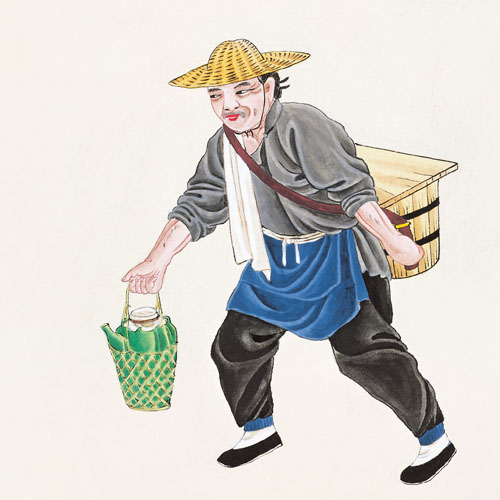他们走街串巷,吆喝着:“熏鱼儿、炸面筋嘞哟!”,遇有买主便以木柜盖板的背面为案板,用刀将肉切成薄片出售。