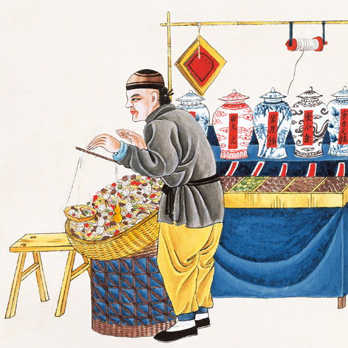 北京干果铺经营糖果、干果、果脯。旧历年底,照例清仓,将各种存货混在一起售卖的形式称作“杂拌儿”,或谓之“杂抓”,庙会也有此摊。粗杂拌儿有炒栗子、小花生、倭瓜子、糖豌豆、柿饼条、桃脯干、苹果干、海棠干等物。细杂拌儿以蜜饯为主,有桃脯、杏脯、苹果脯、糖藕、瓜条、金丝枣、核桃蘸、花生蘸、什锦南糖等。杂拌儿价贱,最受儿童喜爱,为过年的主要零食。商贩吆喝:“买的买,捎的捎,三个大钱闹一包……有青梅,有瓜条,还有深州大蜜桃,来到庙上你不买,到了家里你也摸不着。”