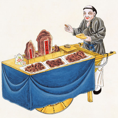 干透的酸枣去核,碾为细面,凝成大块,称“酸枣面”。这类小贩常吆喝着:“酸枣面儿!” 孩子尤其喜食,便闻声而来;通常干食,也可加些白糖以水调之,酸甜可口。也有卖酸枣汤的兼卖“酸枣面”。