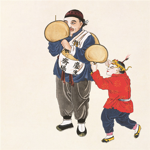 击打太平鼓象征着“太平安乐”,后渐以京西门头沟一带最为盛行。旧历腊月初一至来年二月初二,民间男女请鼓匠将太平鼓修饰一番,就在农家的庭院街巷嬉逗玩耍起来。正如清人何其作《燕山竹板词》中所描绘的:“铁环震响鼓蓬蓬,跳舞成群岁渐终,见说太平都有象,衢歌声与壤歌同”。