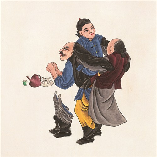 假人摔跤原名“二贵摔跤”。吃饱了,喝足了,摔跤消化食物。由一人通过道具扮演两人摔跤,技巧性强,大有可观,常使观众莫辨谁真谁假。