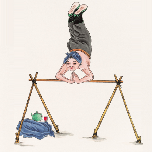清代北京表演单杠技艺称为“盘杠子”,演出形式类似今日体操运动。此术源自棚匠功夫,搭架天棚为高空作业,精练杠上身手以备失足自救。后发展为民间走会的玩意,旧时黑塔寺艺人、缸瓦市万代长清杠会、地安门乐善友杠子、香山幼童杠子为著名杠会,常为皇宫召入作为“内廷供奉”,姿势花样有钓鱼、前坎、后坎、骗马、拿大顶等百余种。光绪年间天桥“八大怪”之一“田瘸子”即为盘杠艺人,除白猿偷桃、鹞子翻身、倒挂金钟等高难动作,还能以食指、中指支撑在杠上倒立。民国晚期天桥艺人曹鹏飞(艺名“飞飞飞”)兄弟精于盘杠,二人或三人能配合演出“空中飞人”。