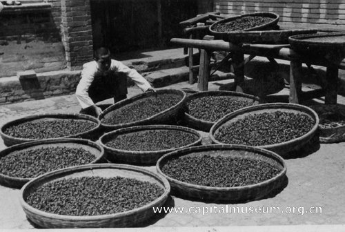 鹤年堂伙计们在刀房晾晒饮片