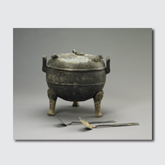 此鼎的高附耳、细长鼎足,均为燕国铜鼎的特征。鼎盖上的高浮雕写实装饰则是典型的燕国铜器装饰风格。