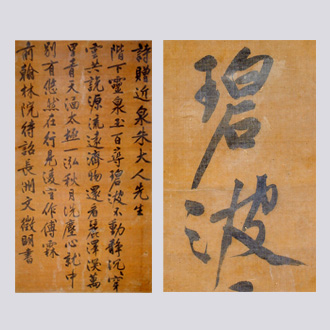 明纵180厘米 横98.3厘米 文徵明(1470-1559),初名壁,字徵明,后以字行,更字徵仲,别号衡山,自称衡山居士。江苏苏州人。明代著名书画家。书法造诣深厚,篆、隶、楷、行、草各体兼工。有"集书之大成者"的美誉。运笔遒劲流畅,自成一体。晚年大字多仿效黄庭坚,风格苍秀。此幅为学黄庭坚大字。