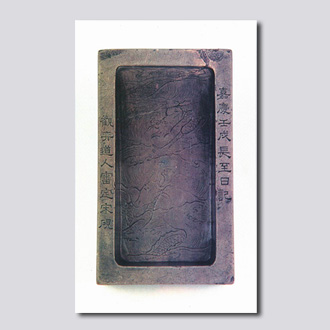 洮河石因产于甘肃省洮河而得名。其最早开采始于宋代,由于采石地点往往是水深流急之处,故开采十分艰难。宋代赵希鹄(gǔ)在《洞天清录》中道:“除端歙(shè)二石外,唯洮河绿石北方最贵重。绿如蓝、润如玉,发墨不减淌溪下岩。然在临洮大河深水之底,非人力所致,得之为无价之宝。”因此洮河石砚传世品甚少。