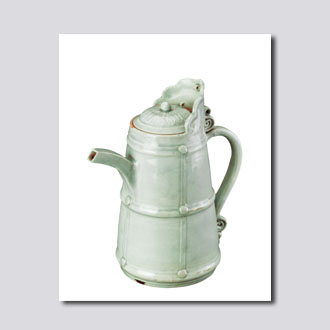 元代出现了一些符合蒙古游牧民族生活习俗的瓷器造型,如多穆壶、僧帽壶、高足杯等。多穆壶是流传于蒙、藏少数民族地区的盛器,藏语称为"勒木",蒙语中称为"东布壶",内地称为"多穆壶"。一般用于盛酥油茶,通常应为木或金属制成,瓷壶仿木或金属制品而烧造。
