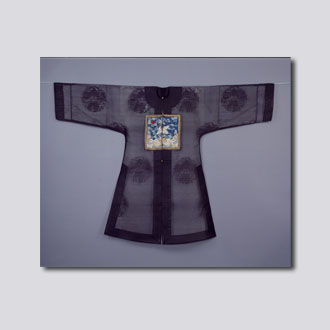 下一件藏品:青色纳纱云鹤纹方补单褂