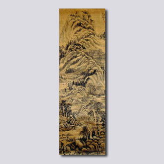 清 绫本水墨纵167厘米 横51厘米 王铎(1592-1652),字觉斯,号十樵,亦号嵩樵、痴庵,孟津(今河南孟津)人,擅画山水、梅兰、竹石。此画构图繁密,行笔纵恣有逸气,随意点染,笔法简洁而具特色。画中自题:"王铎庚寅(顺治七年,1650)端阳为敬哉词坛"。下有"王铎之印"白文印。