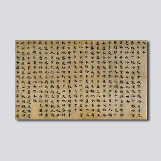 晋 (265-420)纵27厘米 横89.4厘米 约作于公元前3世纪,全篇共18章。此卷为西晋写本《孝经》残卷,是已知《孝经》古本中年代最久的。卷尾题记"太康四年(283)岁在癸卯五月十六日,张儁写"。书体介于隶、楷之间,书法工丽严谨,风格古雅。